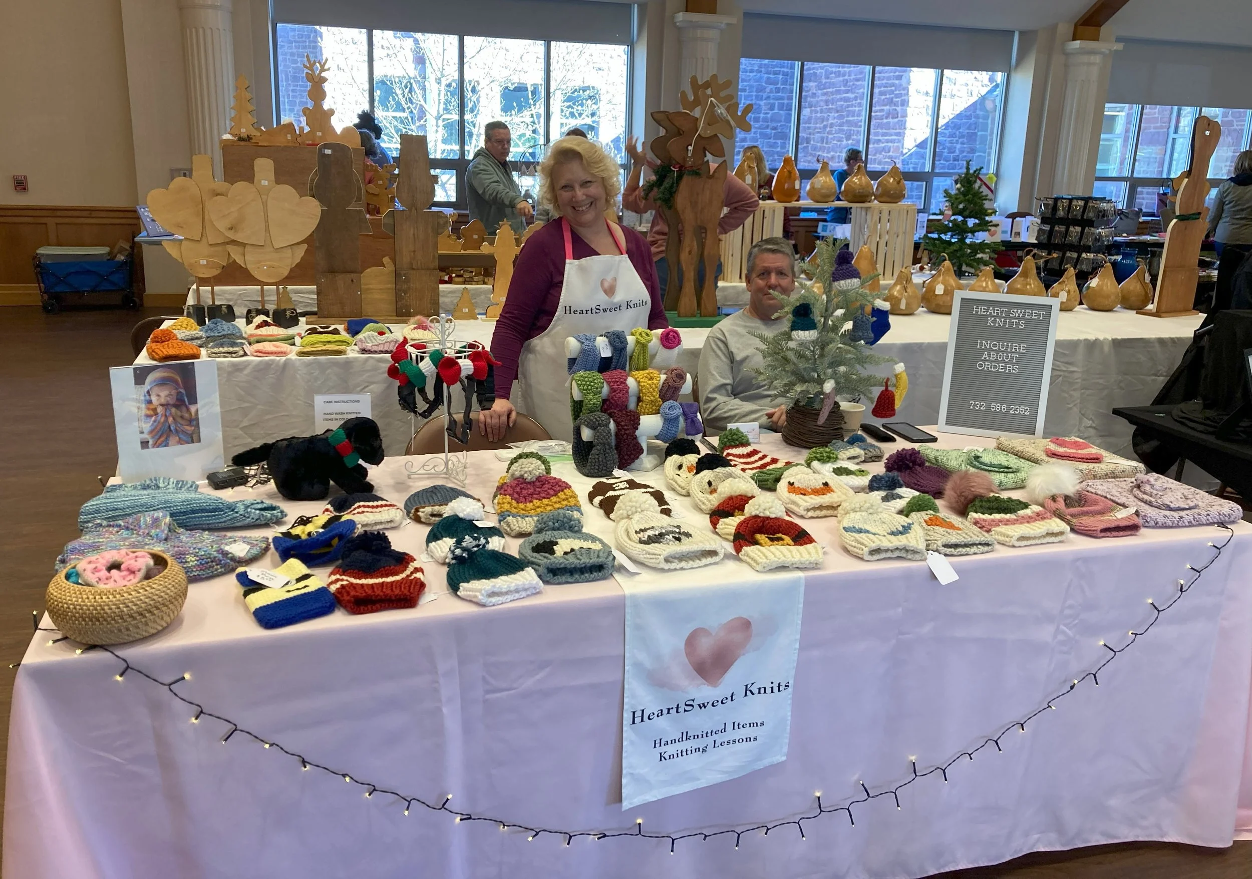Hand-knotted children's hats, headbands, blankets, holiday ornaments, holiday dog collars, mug cozy, fingerless gloves, baby toys