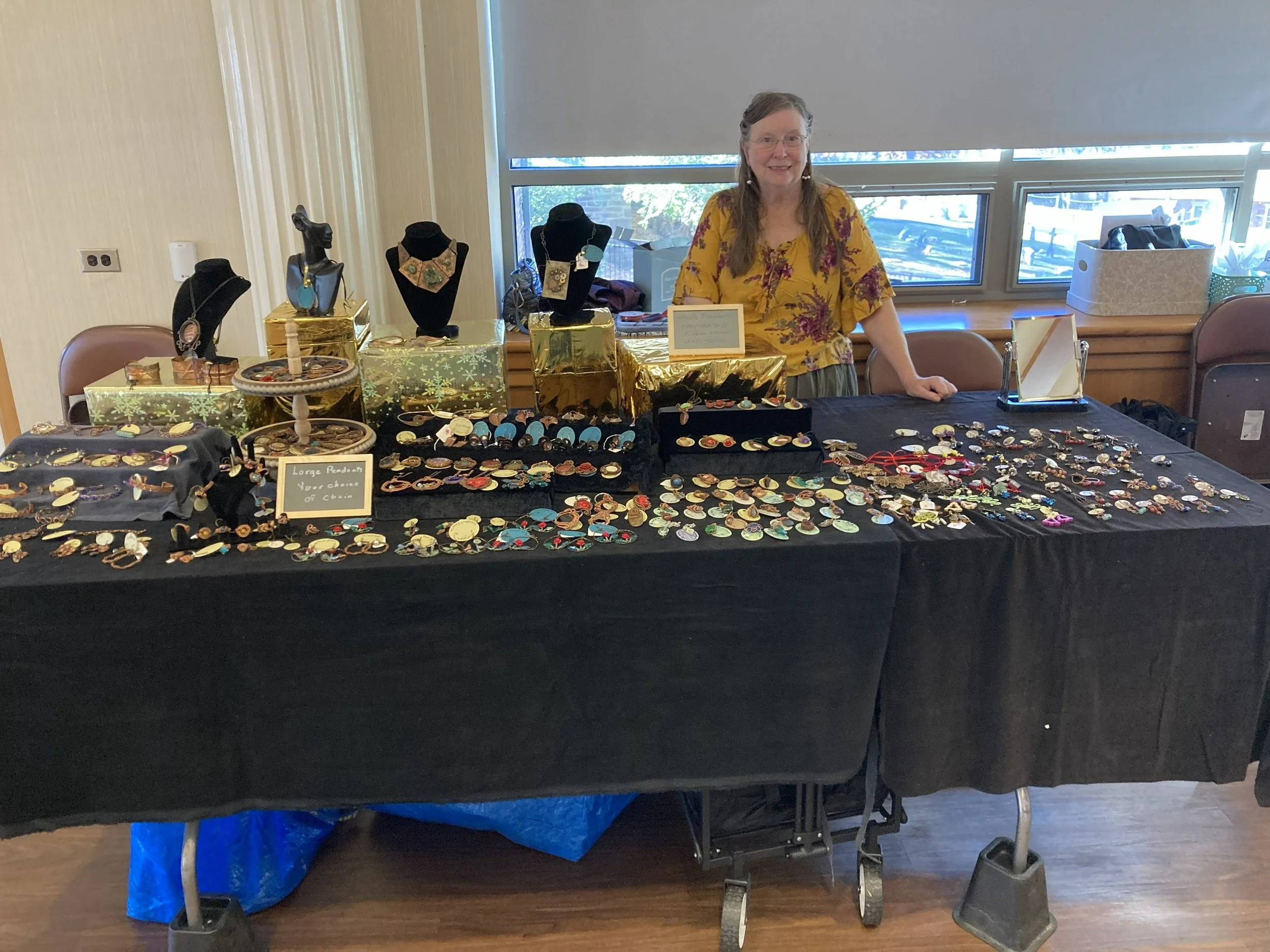 Bespoke handcrafted jewelry, including necklaces, sculpted earrings, paper-crafted and painted bookmarks, and small handmade journals; hand-painted/laser-printed wood ornaments; glitter and painted holiday ornaments. Handmade stone beaded intentions bracelets, handmade stone earrings, and tumbled stones.