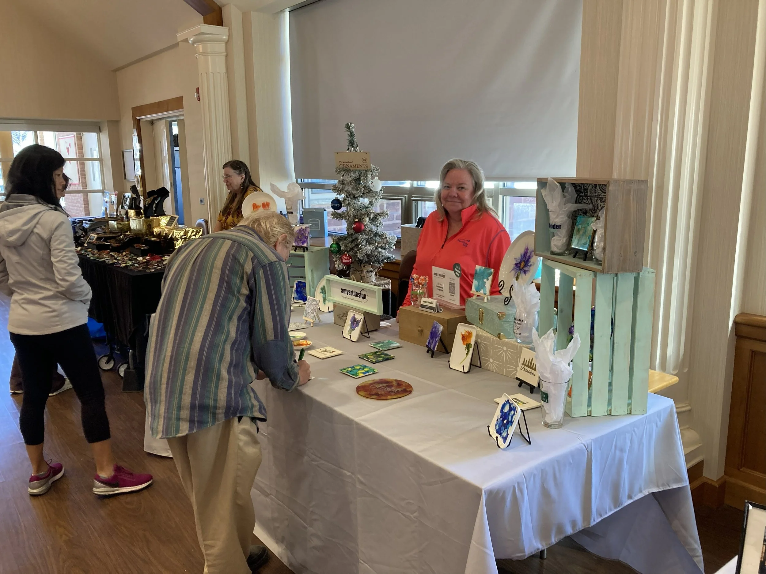 Art on canvas and wood, Clocks on Vinyl, Jewelry, Painted Vases, Magnets, wine bottle holders, wine bottle stoppers, wine glass charms, coasters, ornaments, etc.